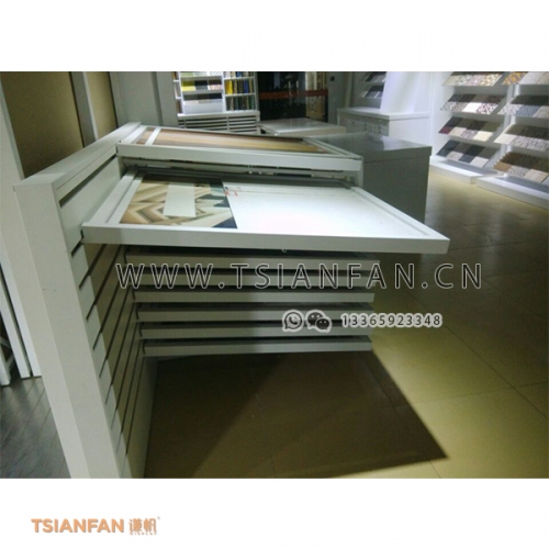 瓷砖平躺推拉架,瓷砖展示架,斜躺瓷砖展示架首选谦帆,只为您的产品价值提升!展架设计新颖,结构简约,成为海内外客户的首选品牌,联系电话:13365904989
